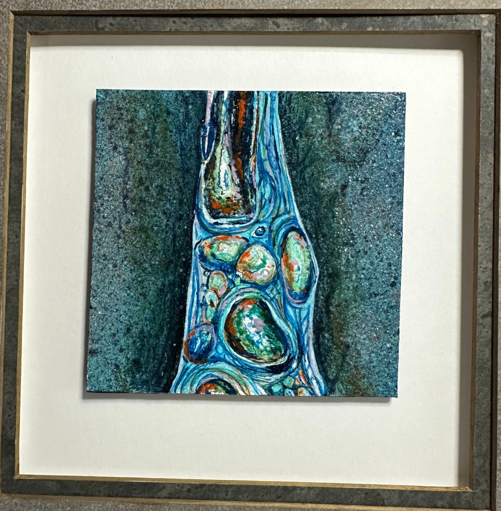 Without painting the specific gems mentioned in this scripture, I wanted to show that even ordinary stores can be symbols of the decisions well made. When I look into a stream and see stones formed by the passing of time I reflect on how amazing it is that the placement of every rock is directly related to the choices that God made. Chance? The randomness of nature? Not in my mind. God’s hand is everywhere. No stone unturned if it is to be turned at all. Look closely. You are always in the presence of the Lord. Make good decisions.