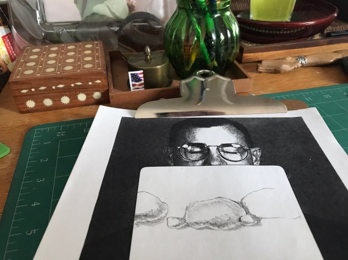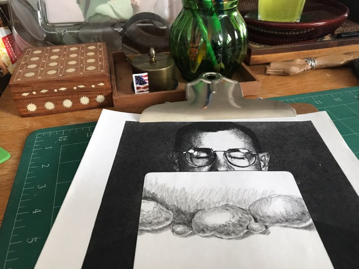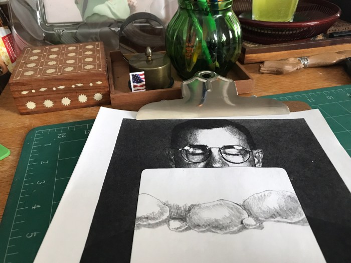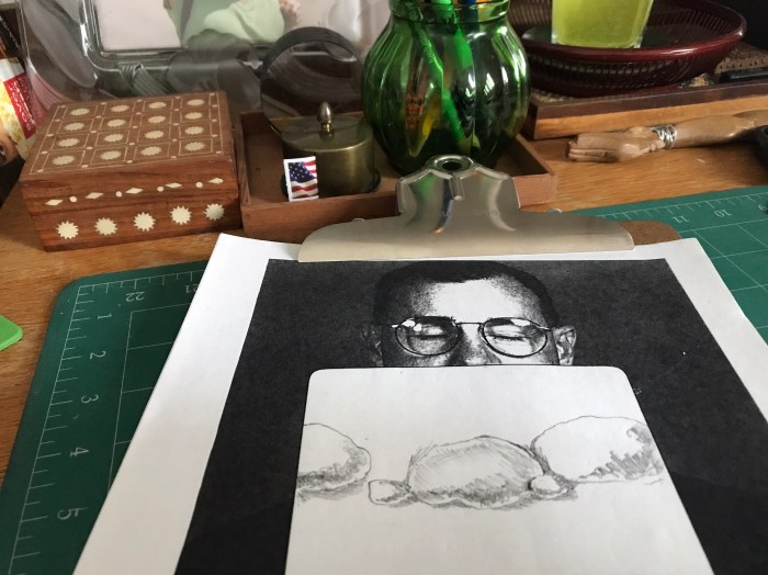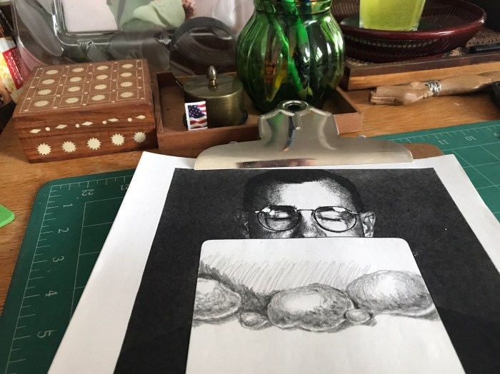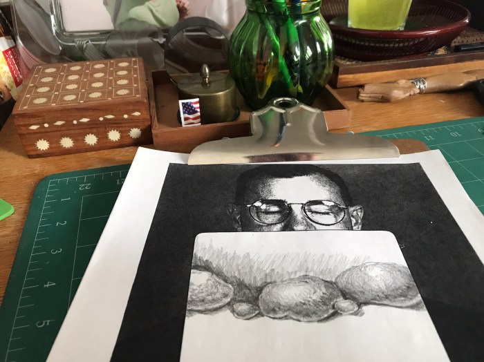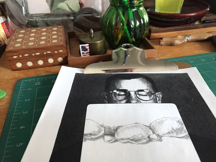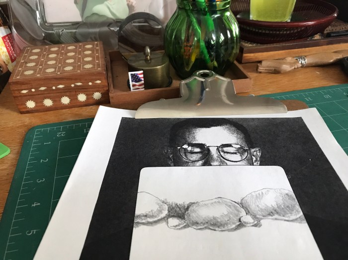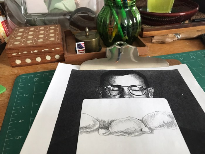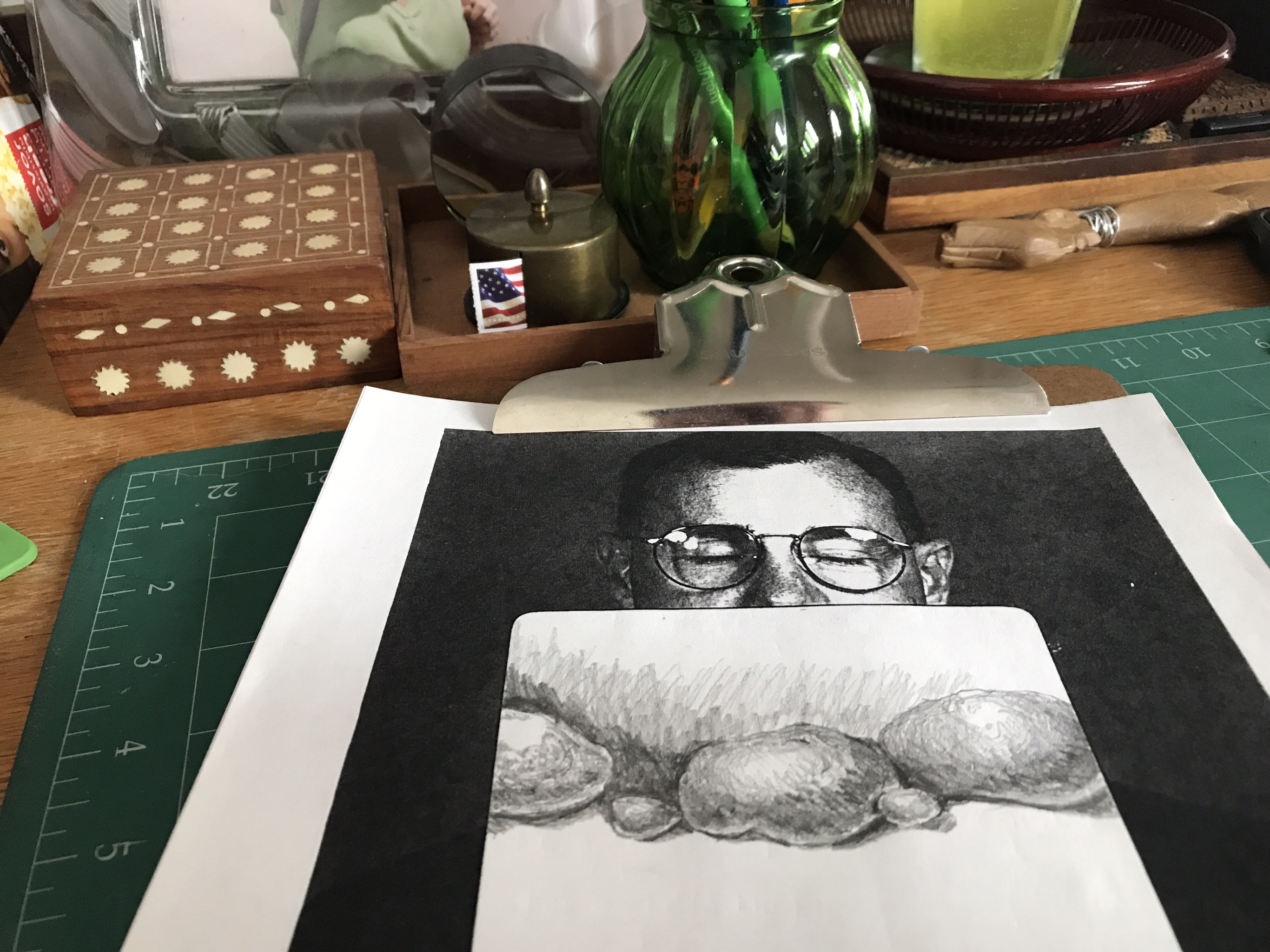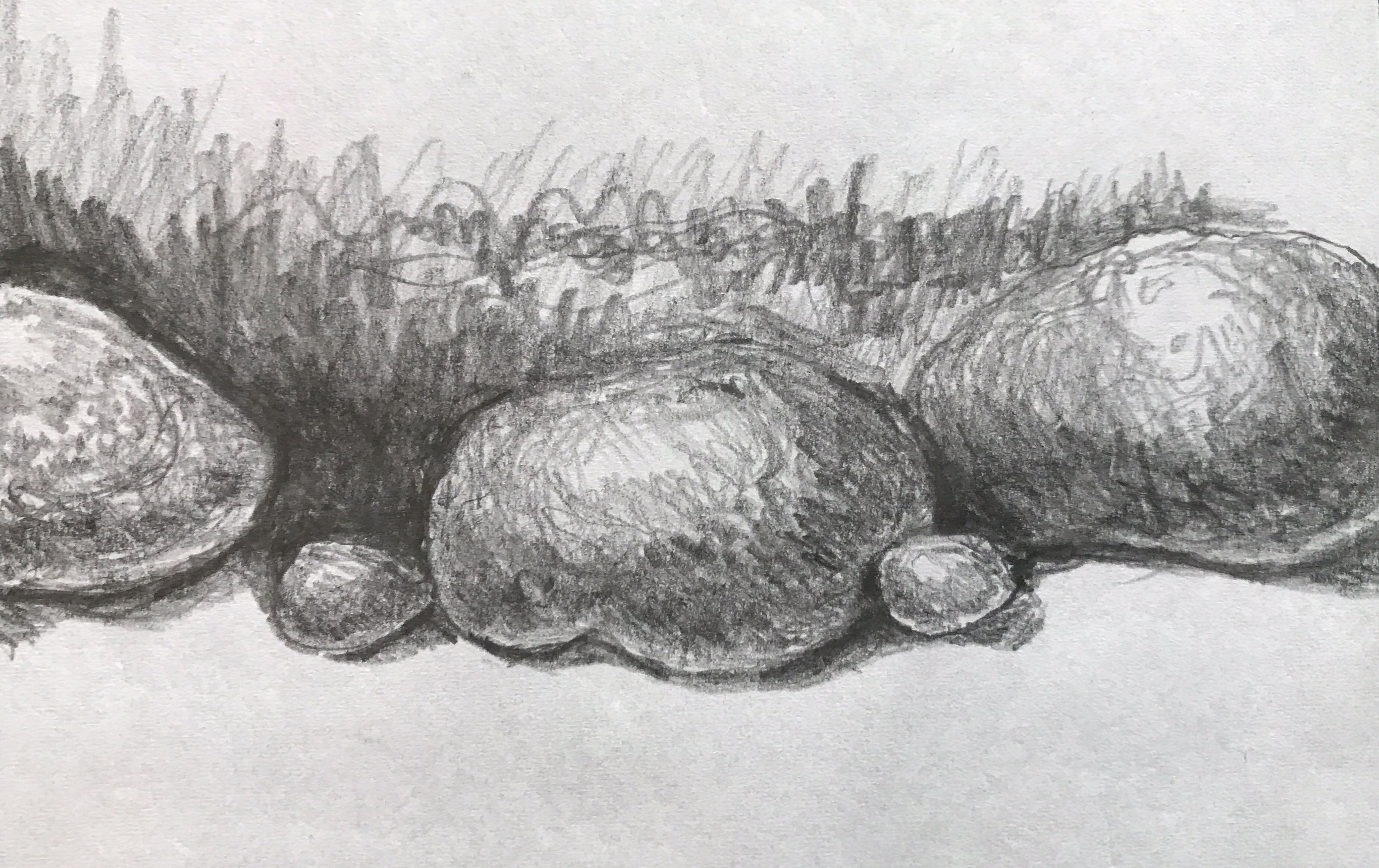 These rocks are from my head. I made them up, no source material, all from memory. Please forgive the flaws in the drawing the way God forgives my flaws when I am clear-headed enough to ask. This was only an excercise to remind myself that I believe drawing to be the foundation to my art making. These photos are sequential, so you can see the process as it develops. There are twenty-six photos. If you are interested, keep scrolling down to see how the drawing looks when it is complete or as complete as it will ever be. I hope you enjoy it.
